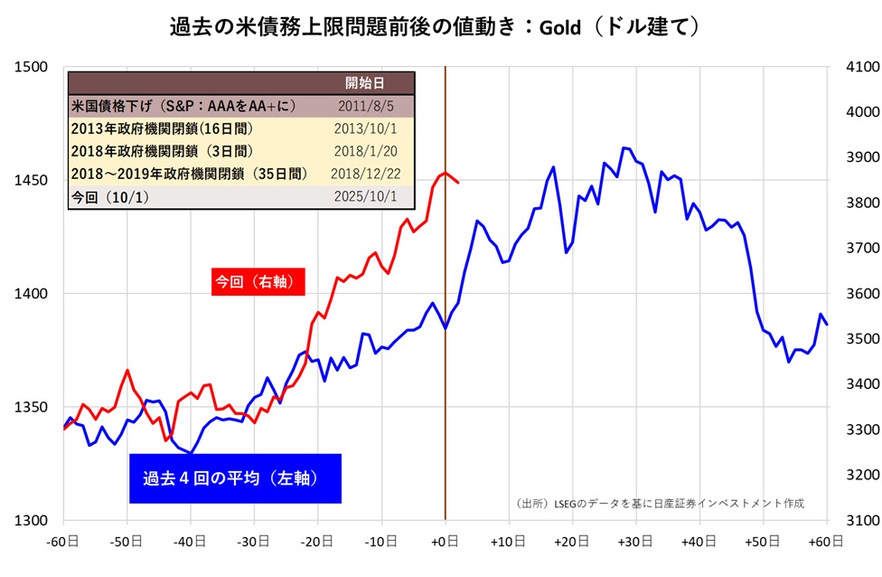 更に、ここにきて金価格の上げを加速させているのが、「米政府機関閉鎖」だ。米連邦政府の予算が10月1日、失効し政府機関が一部閉鎖された。労働統計局(BLS)は業務を停止し、3日に予定されていた9月の雇用統計発表は遅れが避けられない情勢になっている。既に、2日は週間の米新規失業保険申請件数や8月の米製造業受注の発表が見送られるなど経済指標の公表にも影響が生じ始めている。商務省経済分析局国勢調査局からは、10月7日には8月の貿易統計が発表される予定だったが、閉鎖が長期化すれば、同30日に予定される第3・四半期国内総生産(GDP)速報値にも影響が及ぶ可能性が出てきた。